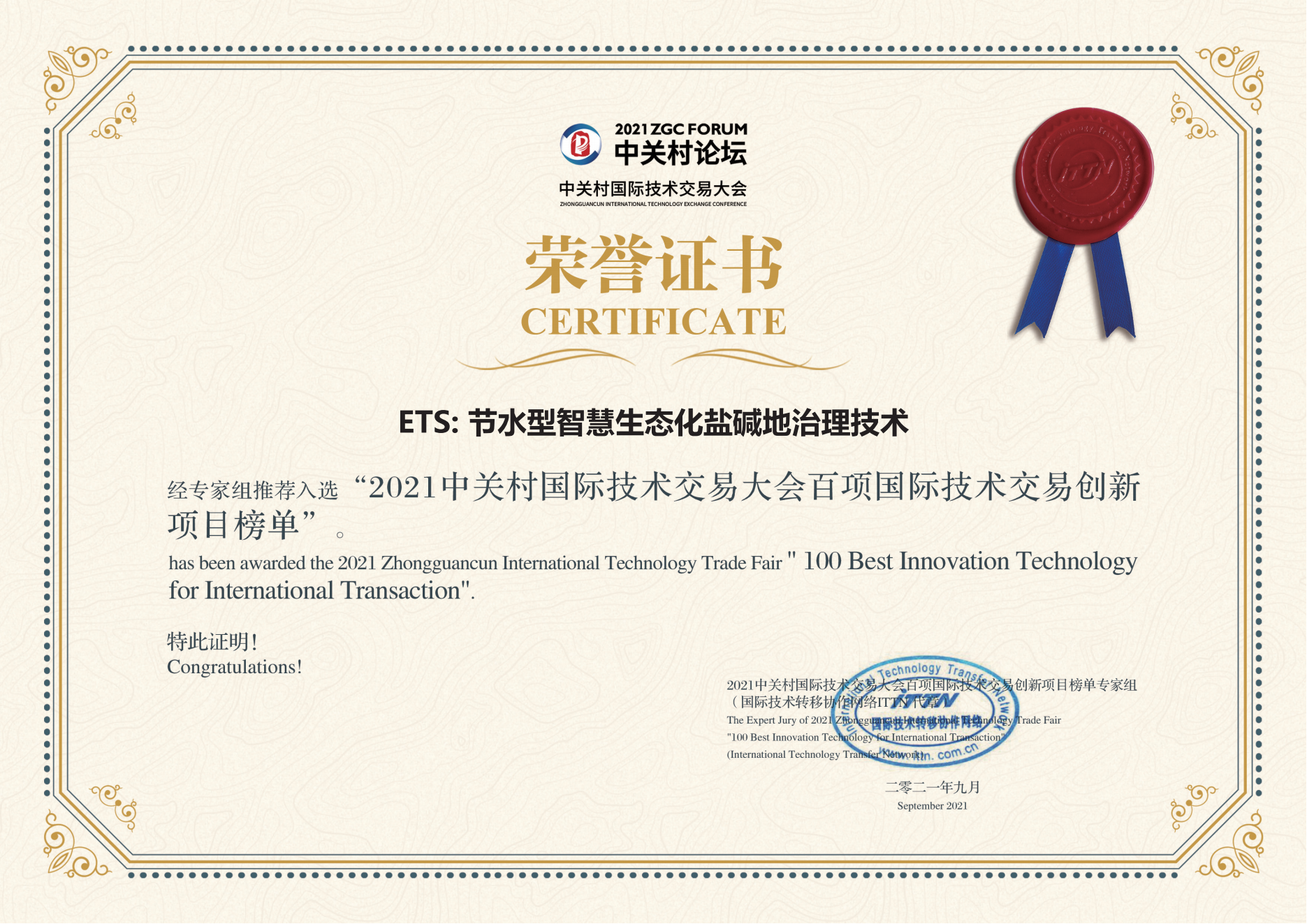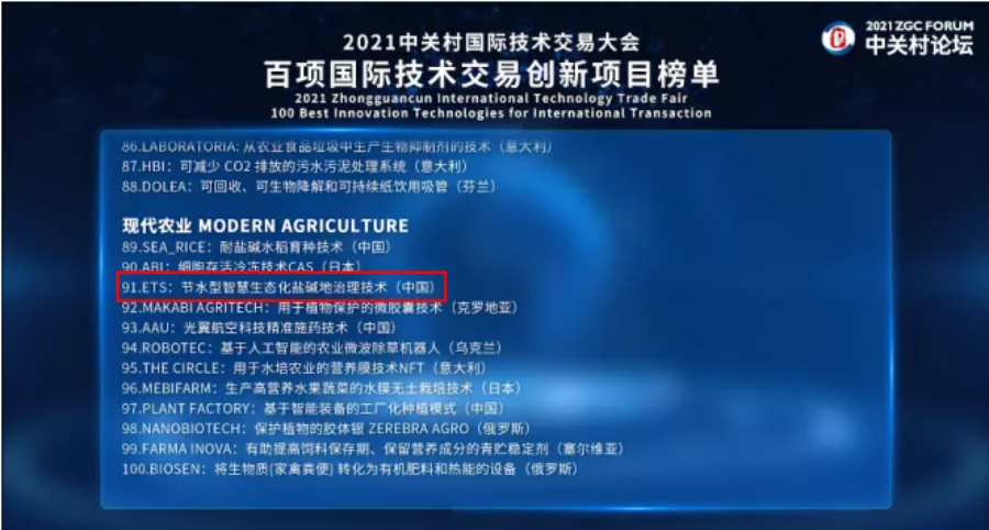ETS節(jié)水型智慧生態(tài)化鹽堿地治理技術成功入選