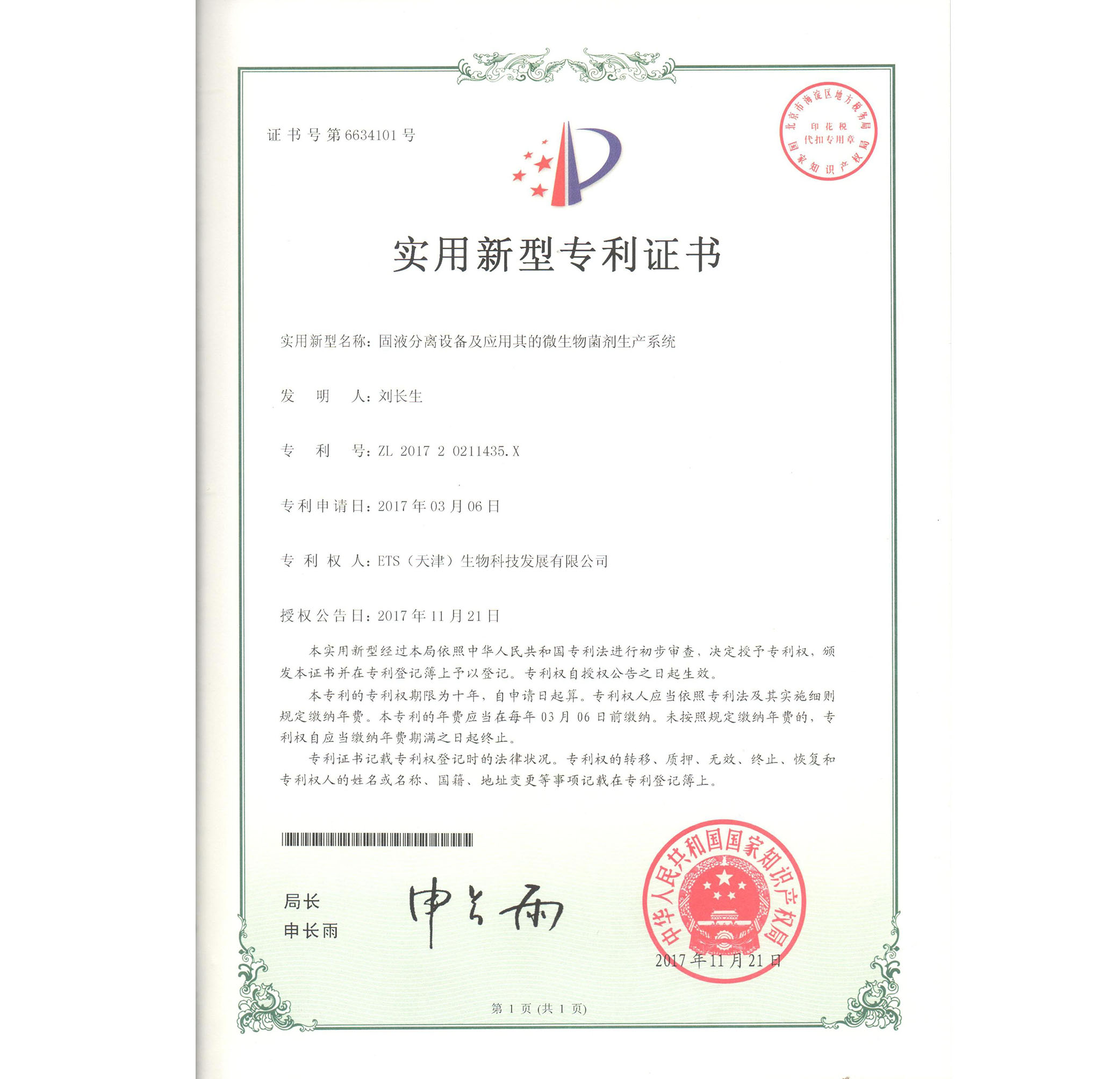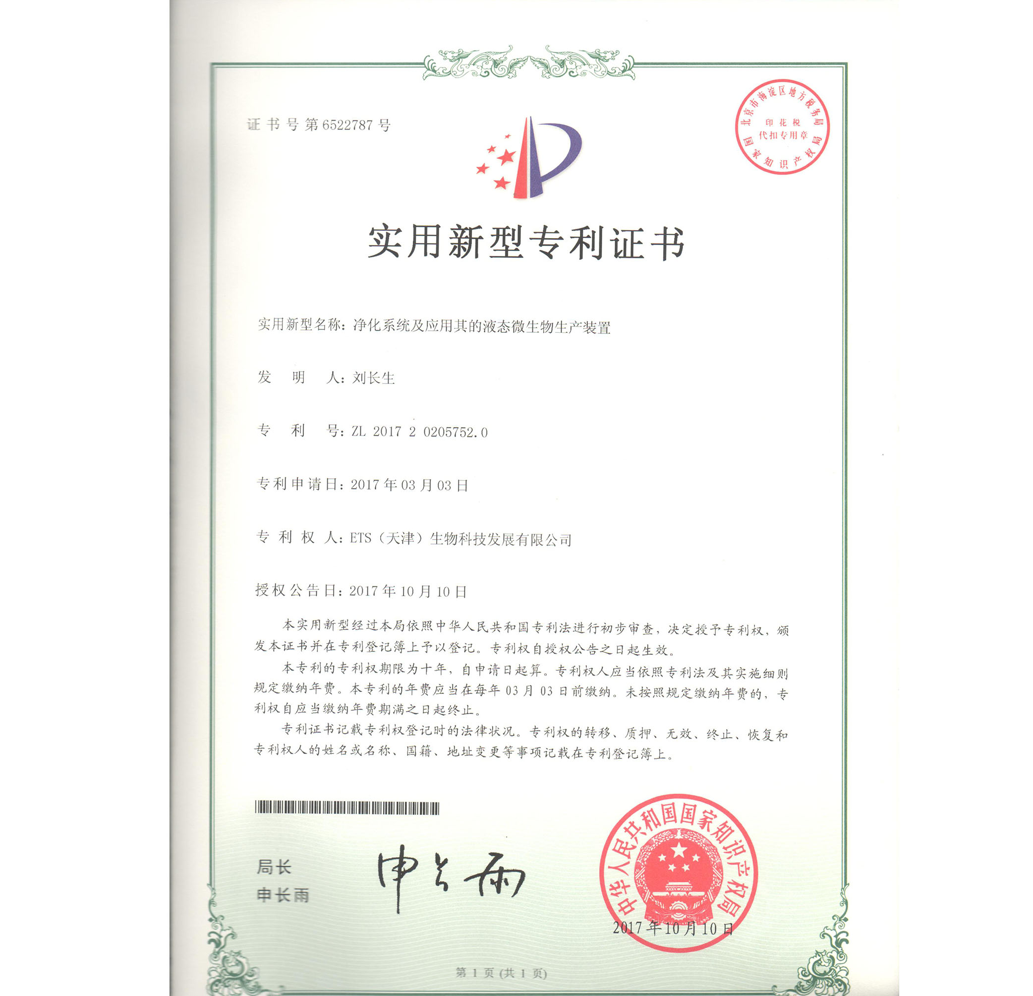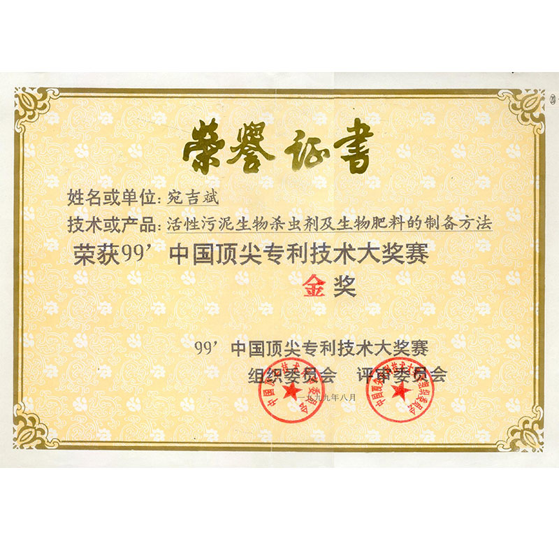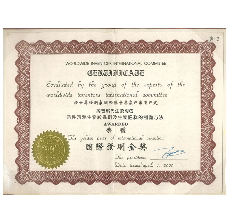 宛教授發(fā)明金獎(jiǎng)證書(shū)