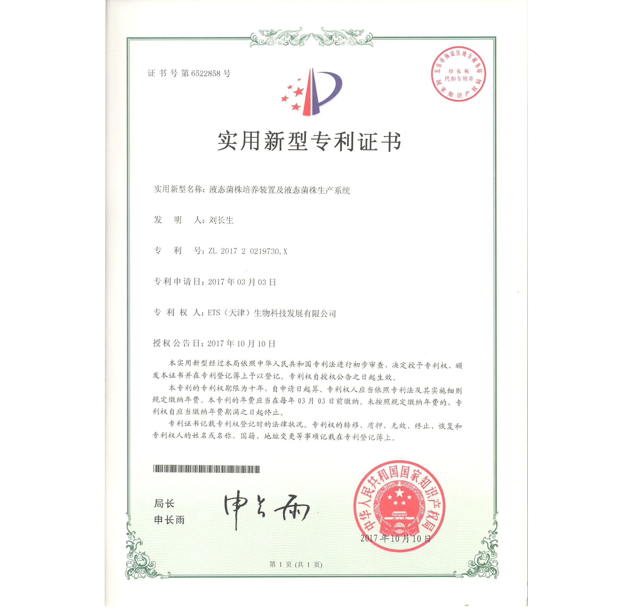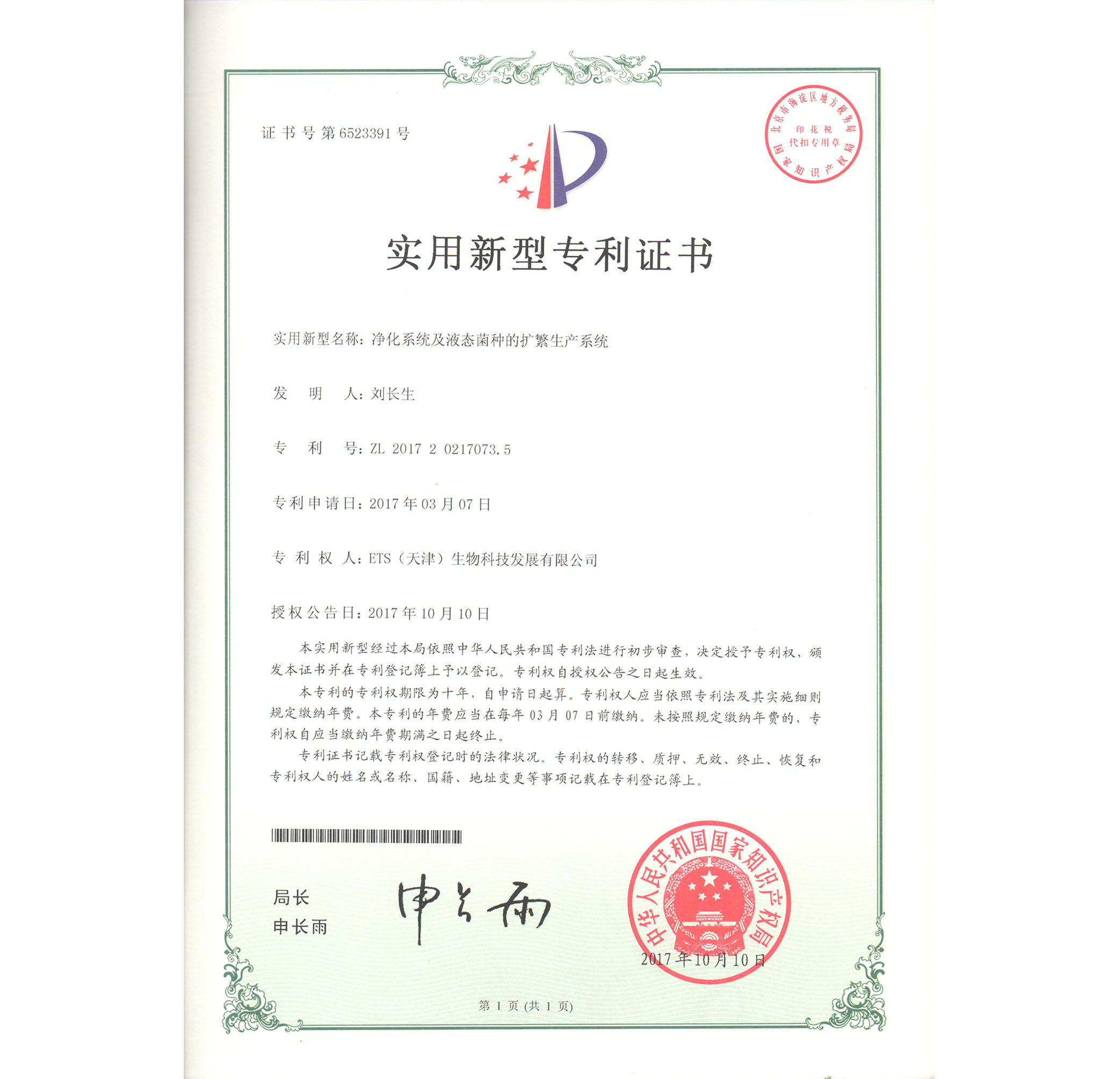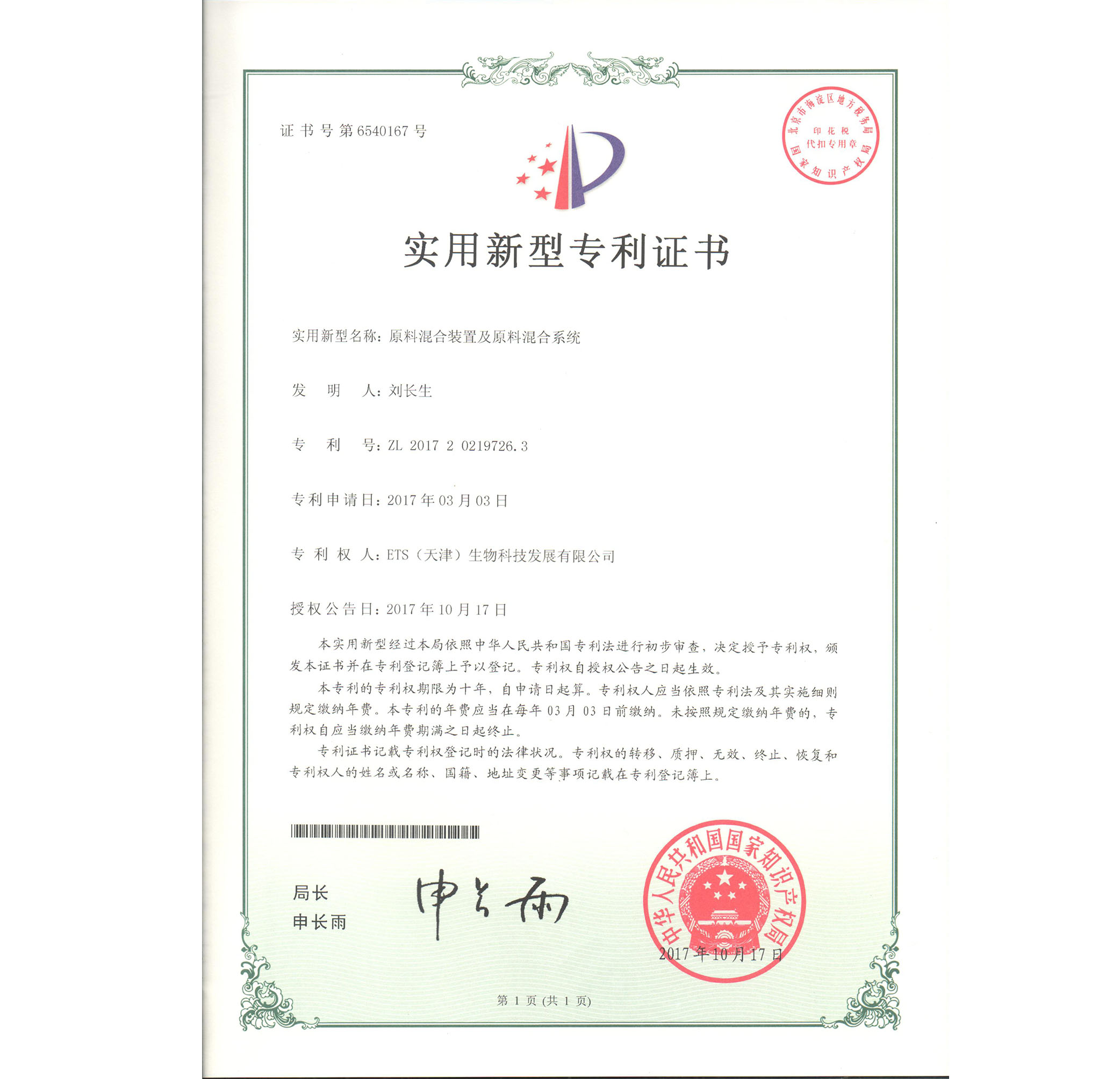 宛教授發(fā)明金獎(jiǎng)證書(shū)